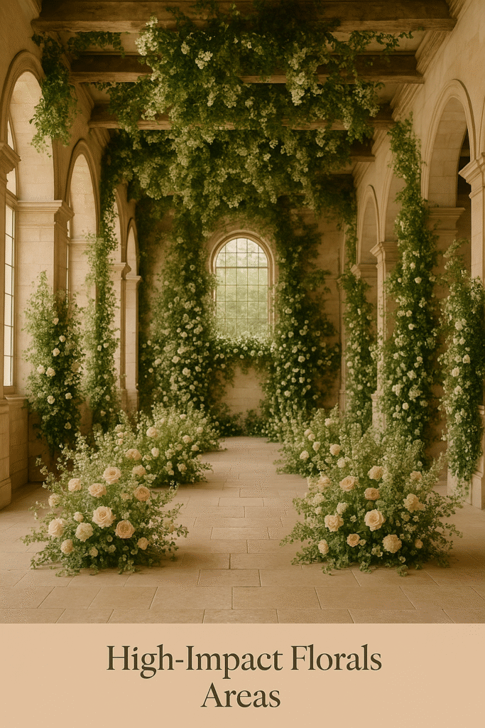 This ensures your florals feel integrated with the venue, not simply placed within it.